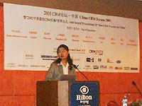 。。雖然"2003CRM論壇·中國"香港會場因SARS的緣故而臨時取消,但這絲毫沒有影響到北京、上海以及深圳會場的成功舉辦,這三場論壇共有300余人出席,超出了主辦單位的預(yù)定人數(shù)。