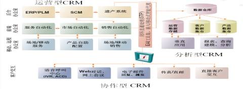 從上圖中不難看出,CRM的三種類型:運營型、協(xié)作型、分析型。前兩種形式只是一些簡單的記錄,把銀行業(yè)所需要的客戶基本檔案的收集,非常簡單。真正能對銀行經營產生效益在于分析型CRM,其重點在于對相關數據的分析與挖掘----BI,強調提供詳細分析。
