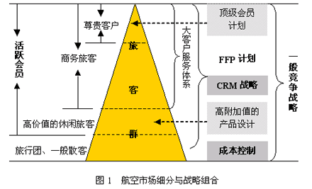國內主要航空公司都進一步明確了市場細分與戰(zhàn)略組合的關系,凸現(xiàn)“以客戶為中心”的經營理念,如圖1所示。