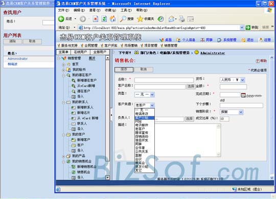 上圖是杰易CRM客戶關(guān)系管理系統(tǒng)的營銷活動管理模塊。該模塊將營銷活動和目標管理分了七項管理,操作很是簡單但功能還非常到位。下圖是銷售機會模塊,筆者認為此模塊設(shè)計者的思路特別周到,用戶可以隨時對自己銷售機會的狀況有一個清晰的掌控,利于銷售進程的安排。