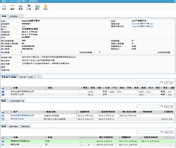 VamCRM的營銷戰(zhàn)役,可以自動統(tǒng)計有多少線索成功轉化為業(yè)務機會,有多少線索最終簽單,從而使得企業(yè)相關管理人員可以對營銷戰(zhàn)役的效果得到直觀的量化評估,對市場活動的投資收益做到心中有數(shù)。