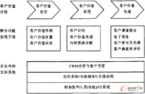 現(xiàn)有CRM框架的基本階段劃分是客戶(hù)生命周期,這是從企業(yè)角度出發(fā),而非從客戶(hù)價(jià)值角度出發(fā);而且,現(xiàn)有CRM框架未能有效整合客戶(hù)關(guān)系管理流程與企業(yè)內(nèi)部管理系統(tǒng),基于客戶(hù)價(jià)值的客戶(hù)關(guān)系管理的根本目的是彌補(bǔ)以上兩個(gè)不足。