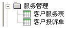 服務(wù)管理模塊由客戶投訴單和客戶服務(wù)表組成。這其中存在著一個(gè)工組流轉(zhuǎn)?头藛T填寫客戶投訴單,技術(shù)部經(jīng)理審批客戶投訴單,被指派的人員辦理客戶服務(wù)表。