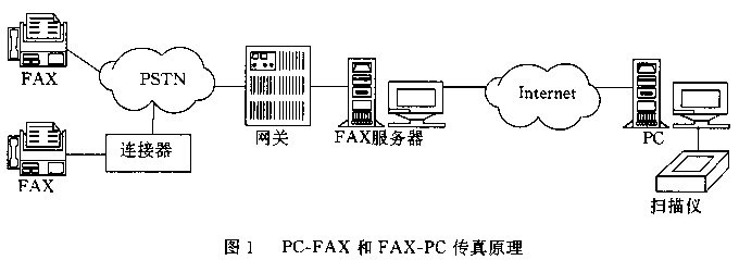 傳真機的基本工作原理是利用光電掃描技術將圖像、文字轉化為采用霍夫曼編碼方式的數(shù)字信號,經(jīng)V.27、V.29方式調(diào)制后,按T.30協(xié)議在模擬信道上傳輸。由于通信協(xié)議、信號格式的不同,傳真機是不能直接在Internet網(wǎng)上傳送信息的。要使連接在PSTN上的傳真機發(fā)出的信號在Internet網(wǎng)上傳輸,基本的原理則是在PSTN和Internet之間構筑網(wǎng)關,由網(wǎng)關進行協(xié)議的轉換,使PSTN網(wǎng)的傳真信號和Internet網(wǎng)的數(shù)據(jù)包可以相互轉換。
