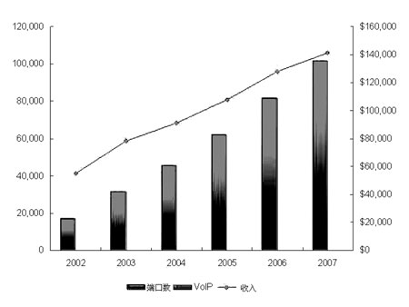 中國(guó)的運(yùn)營(yíng)商,包括中國(guó)電信、中國(guó)網(wǎng)通、中國(guó)聯(lián)通,都已經(jīng)提供VoIP業(yè)務(wù),與此同時(shí),中國(guó)寬帶用戶(hù)預(yù)計(jì)將在2004年底達(dá)2000萬(wàn)以上,成為全球第二大寬帶市場(chǎng)。