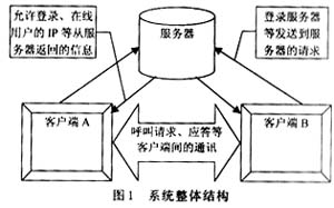 通過設置一個信令服務器的方式綜合以上兩種方式的優(yōu)缺點。用戶通話程序工作于半客戶機狀態(tài),信令服務器負責客戶的集中呼叫。當某一個客戶呼叫,服務器負責中轉呼叫,當被叫客戶響應呼叫并應答后,自主于呼叫方進行通話而不必經(jīng)過信令服務器,這樣,大幅度地減少了服務器的數(shù)據(jù)量。有了集中的信令服務器,也便于客戶的管理,還可進行廣播消息的發(fā)布。