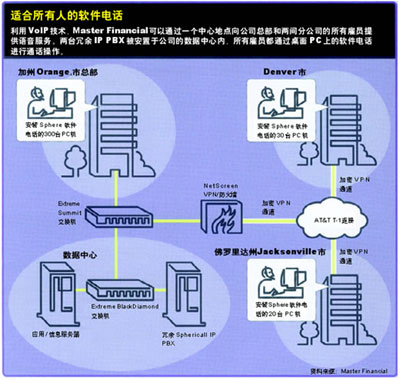 當Master Financial決定采用VoIP時,這家公司的確是下定決心。當時,該公司只有350名員工,人員規(guī)模僅相當于Lehman這樣大企業(yè)的一家分公司。Master