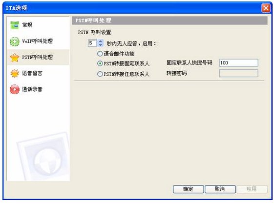 啟用 PSTN呼叫固定轉(zhuǎn)接功能,固定聯(lián)系人快捷號設(shè)置為上述聯(lián)系人的快捷號,即100,如下圖所示: