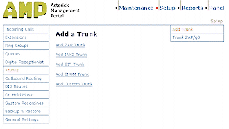 最開(kāi)始要做的事情就是設(shè)置中繼了(圖4),這將是告訴AAH怎樣來(lái)與你選擇的VoIP服務(wù)提供商來(lái)進(jìn)行通信。在在線用戶手冊(cè)(http://asteriskathome.sourceforge.net/handbook/Section_3.3)中提供了關(guān)于怎樣設(shè)置Free