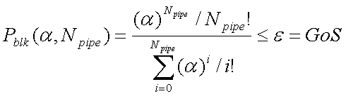 用 和 分別表示流量管道容量和每個呼叫所需帶寬,則流量管道可同時傳送的呼叫數目可表示為 。記 為呼叫阻塞的概率,則Erlang B公式可以表示為[6]: