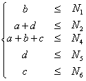 1, 2, …, 6) 表示第i個網關可以支持的最大呼叫數量,記通過鏈路A-C的最大呼叫數量為m, 則a, b, c, d和m滿足以下關系: