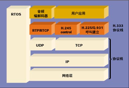Q.931/H.225流程包括呼叫建立和拆除。圖1表示一個完整的H.323協(xié)議棧的實現(xiàn)。值得指出的是,該實現(xiàn)依賴于網(wǎng)絡(luò)協(xié)議棧和實時操作系統(tǒng)(RTOS)。多數(shù)應(yīng)用系統(tǒng)需要RTOS以便同時處理多個流程和/或呼叫。