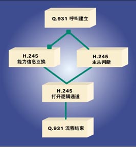 Q.931呼叫建立流程啟動呼叫建立過程并且通知遠(yuǎn)程終端有一個呼入。當(dāng)呼叫建立起來后,某個終端可能啟動H.245規(guī)定的主從判斷流程或能力信息互換流程。每個終端都需要執(zhí)行能力信息互換流程,但是只要一個終端執(zhí)行主從判斷流程就可以了。主從判斷和能力信息互換完成后,邏輯信道打通了。最后,該對話通過另一個Q.931流程關(guān)閉。