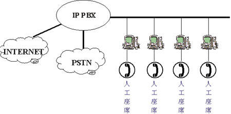 PBX毫無疑問是CTI的又一次發(fā)展,它不再是兩網(wǎng)簡單的加,它徹底地去掉了一套昂貴的PBX網(wǎng)絡(luò)及兩網(wǎng)連接設(shè)備,電話網(wǎng)絡(luò)僅成為服務(wù)對象接入的一個手段,這種系統(tǒng)結(jié)構(gòu)的設(shè)計使得呼叫中心的成本至少降低了一半,同時由于開放的