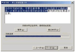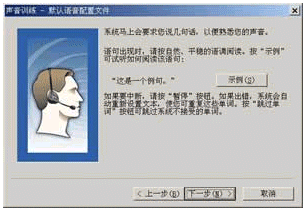 點擊"下一步"按鈕后,就會看到如圖11所示的對話框,請根據(jù)窗口中的提示對話信息朗讀,如果朗讀正確,對話信息將會反白顯示,如果你朗讀錯誤,請重新進(jìn)行。