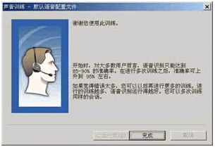 當(dāng)你15分鐘的訓(xùn)練全部結(jié)束后,將會看到如圖12所示的對話框,此時原來默認(rèn)的用戶配置文件將用剛才所收集的訓(xùn)練數(shù)據(jù)進(jìn)行更新,稍候片刻,你就會看到如圖13所示的對話框,告訴你語音訓(xùn)練已經(jīng)結(jié)束。