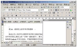 安裝成功后,你會從圖16中看到一個手寫圖標(biāo),接下來我們就可以使用手寫識別功能啦。首先,你必須在屏幕上選定書寫區(qū)域,可以是屏幕上類似于筆記本橫格紙的輸入板,也可以在屏幕上任意的位置書寫。我們可通過使用手寫輸入設(shè)備或移動鼠標(biāo)墊上的鼠標(biāo)來形成文字,從而完成書寫,手寫文字將被自動識別,并輸入到程序的插入點處。就像通常在紙張表面上一樣,你可以使用草書、印刷體或二者兼而有之地進(jìn)行書寫,書寫時不必每寫完一個字母后作停頓,可輸入整個單詞并在單詞之間留出空格。