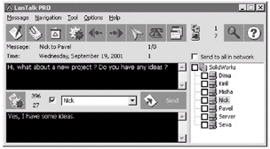 像ICQ、OICQ、MSN Messenger等即時(shí)通訊軟件必須登錄Internet后才能使用,并不支持局域網(wǎng),而LanTalk Pro是一款局域網(wǎng)即時(shí)通訊的專用軟件,通過(guò)它你可以快速、方便地與同一局域網(wǎng)中的任何人進(jìn)行實(shí)時(shí)交流。