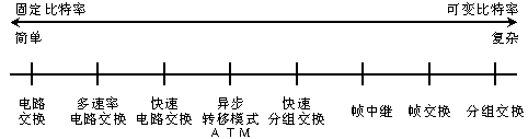 在通信網(wǎng)絡發(fā)展過程中,出現(xiàn)了多種信息傳輸方式,它們分別適應不同業(yè)務速率,如下圖所示。這里只對比電路傳送模式和分組傳送模式兩個極端情況,對其他模式,讀者可以自行參照下圖和相關資料。