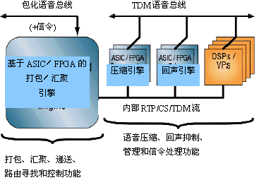 由于ASIC/FPGA技術(shù)是一種定制設(shè)計技術(shù),不會輕易更改,主要是因為從設(shè)計到投放市場需要不短的周期。這使得最適合用ASIC定做的是成熟的、充分定義的、反復(fù)使用不會頻繁更改的功能。在VoP網(wǎng)關(guān)中使用ASIC的目的是實現(xiàn)打包、回聲抑制和壓縮功能,減輕DSP/RISC的負荷,而不是替換它們。
