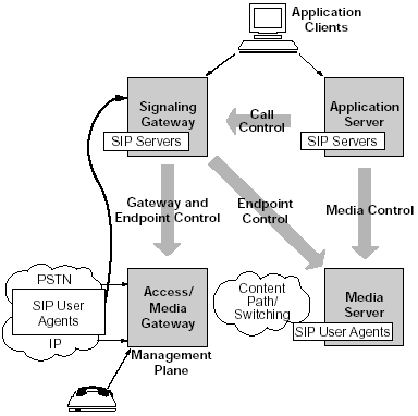 許多語(yǔ)音服務(wù)都是由媒體服務(wù)器提供的。例如,一個(gè)客戶給某個(gè)電子商務(wù)網(wǎng)站打電話會(huì)被接到一個(gè)自動(dòng)語(yǔ)音應(yīng)答(IVR)上或者自動(dòng)總機(jī)上。這些應(yīng)用使用了語(yǔ)音,語(yǔ)音識(shí)別和音頻等功能,都是運(yùn)行在媒體服務(wù)器上的。在下一代網(wǎng)絡(luò)的實(shí)現(xiàn)中,媒體服務(wù)器就象是另一個(gè)電話(或者說,一個(gè)SIP的終端)。因此,他們可以享受和用戶一樣的SIP的優(yōu)點(diǎn)。