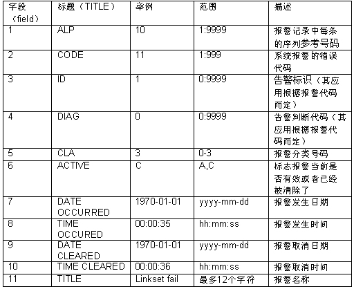 12.3.1 報警記錄文件格式:
