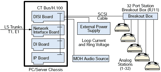 DISI16R2, DISI24R2, 和 DISI32R2 可以通過CTbus與其他集成的網絡接口和資源板卡連接構成可擴展的中繼和座席交換的配置.