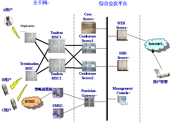 概述 。。今年來,隨著電話會議技術(shù)的不斷成熟,基于計算機(jī)平臺的會議型業(yè)務(wù)應(yīng)用越來越活躍,其中電話會議系統(tǒng)、QQ聊天系統(tǒng)以及BGM便是主要熱門應(yīng)用。 。。交互式電話會議系統(tǒng)是一個真正由用戶自己管理的智能型交互式電話會議系統(tǒng),是目前國際上流行的一種召開會議的新形式?蛻衾盟梢噪S時隨地召開本市、國內(nèi)或國際的電話會議,人們無論身在何處,只需撥打一個事先約定的電話會議號碼和密碼,即可參加會議,并且能自由組會,同時發(fā)言,自由交談?梢酝瑫r招開數(shù)十方,適用于商務(wù)研討、緊急討論會、信息匯總會、親友聚會等各種各樣的會議。