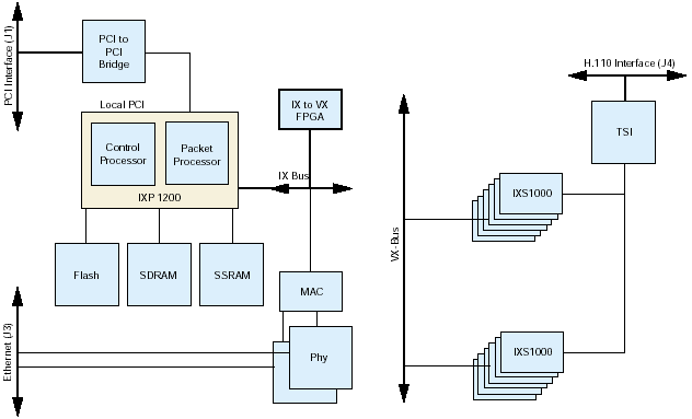 1XP1200網(wǎng)絡(luò)處理器以及Dialogic LXT1000以太網(wǎng)接口,該接口包括了對(duì)1000BaseT和100BaseTX網(wǎng)絡(luò)接口的支持。