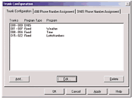 用戶可以為項(xiàng)目中的任何一個應(yīng)用程序分配一個中繼資源或者多個中繼資源。也可以根據(jù)從那些呼叫線路受到的ANI或者DNIS信息來決定應(yīng)該為程序分配哪種資源。