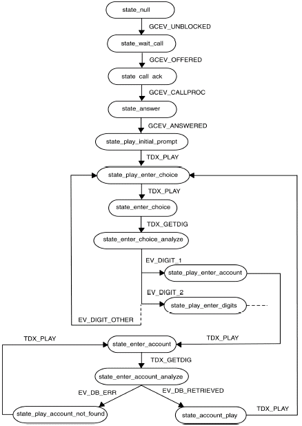 IVR參考程序(SimpleIvr)為想用R4和包括軟件開發(fā)包(SDK)的Global Call APIs 建立應(yīng)用程序的Dialogic用戶提供了演示代碼。該應(yīng)用程序用C++開發(fā),使用面向?qū)ο蟮姆椒ㄔ试S增加新的組件及對(duì)已有組件的重用。SimpleIvr應(yīng)用程序設(shè)計(jì)為單線程、異步,符合必要的性能需求,并使用了一些特殊的技術(shù),比如線程池,來(lái)處理長(zhǎng)時(shí)間的運(yùn)轉(zhuǎn)。