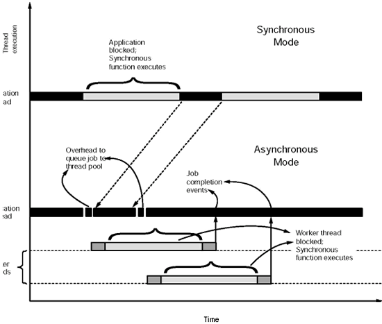 異步方式調(diào)用時(shí),返回碼僅表示這項(xiàng)工作已被成功的傳遞給工作線程。實(shí)際的錯(cuò)誤返回碼將在同步函數(shù)完成時(shí)由工作線程發(fā)送到應(yīng)用程序的事件循環(huán)里。