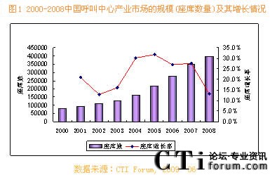 圖 1 2000-2008中國呼叫中心產(chǎn)業(yè)市場的規(guī)模